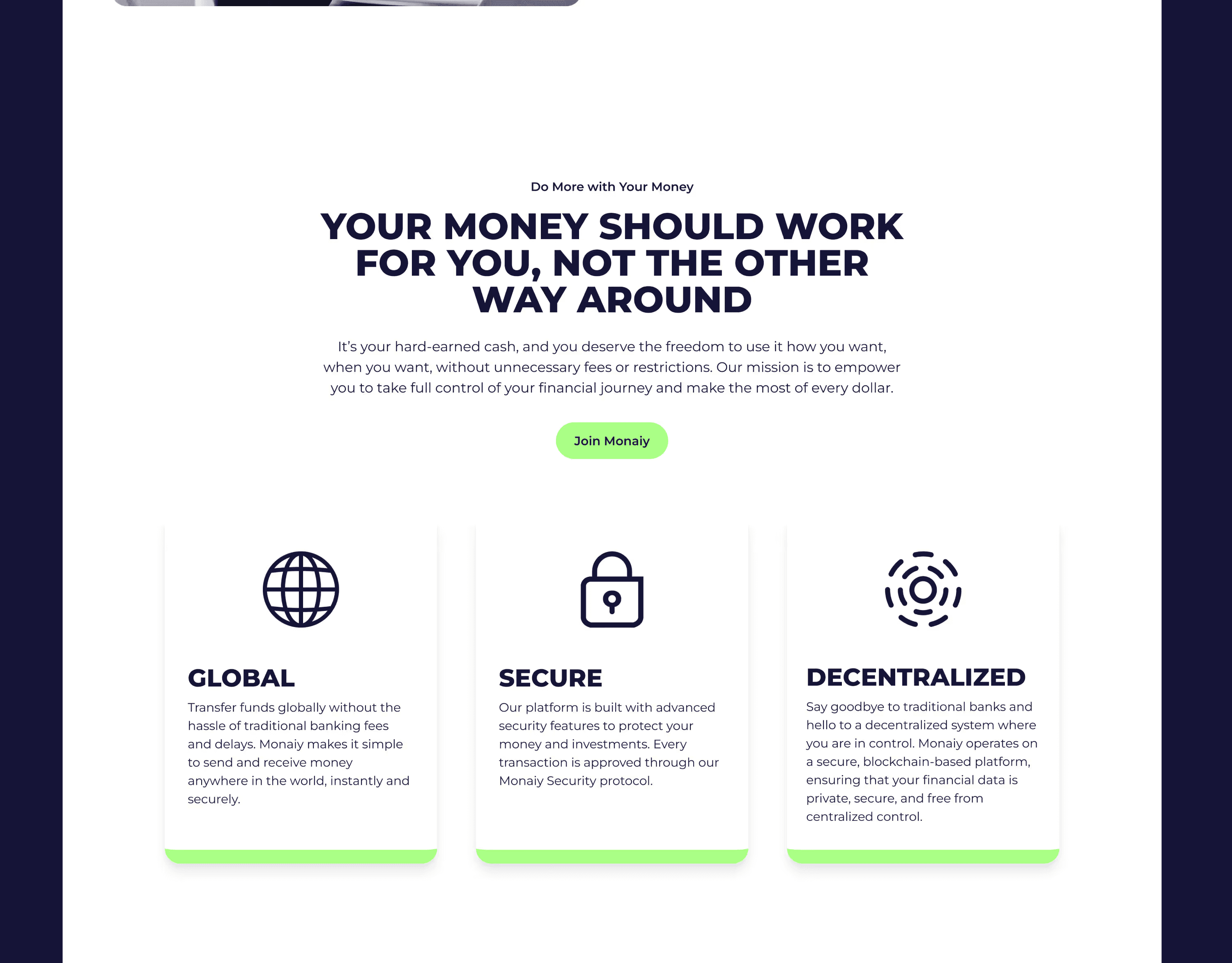 Monaiy is a pioneering decentralized crypto bank dedicated to revolutionizing the way people manage and grow their wealth. A secure banking experience designed for the digital age.